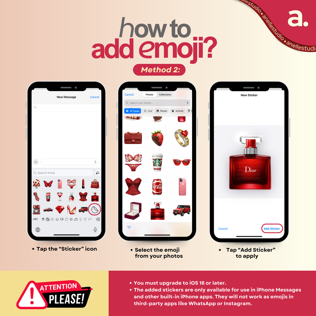 ♥️100+ iOS 18 Red Aesthetic Emoji Stickers Pack ♥️