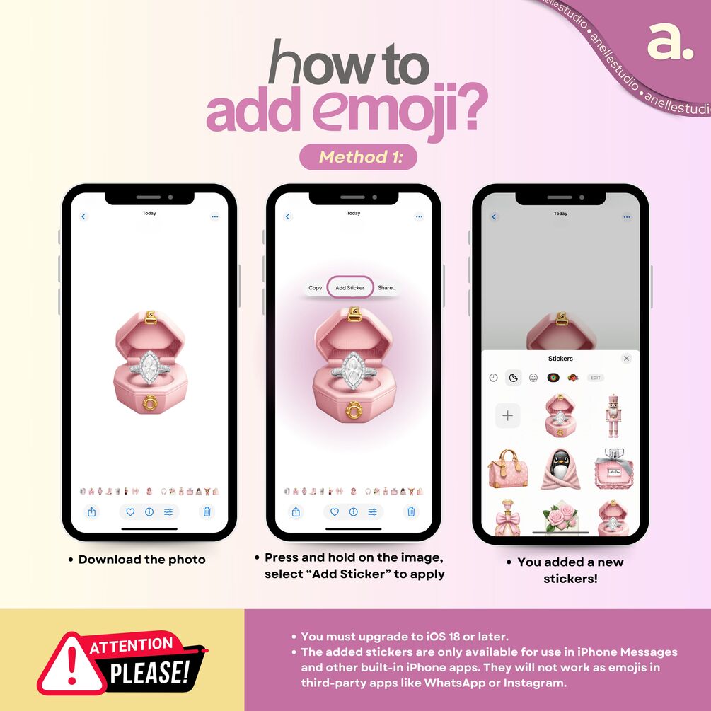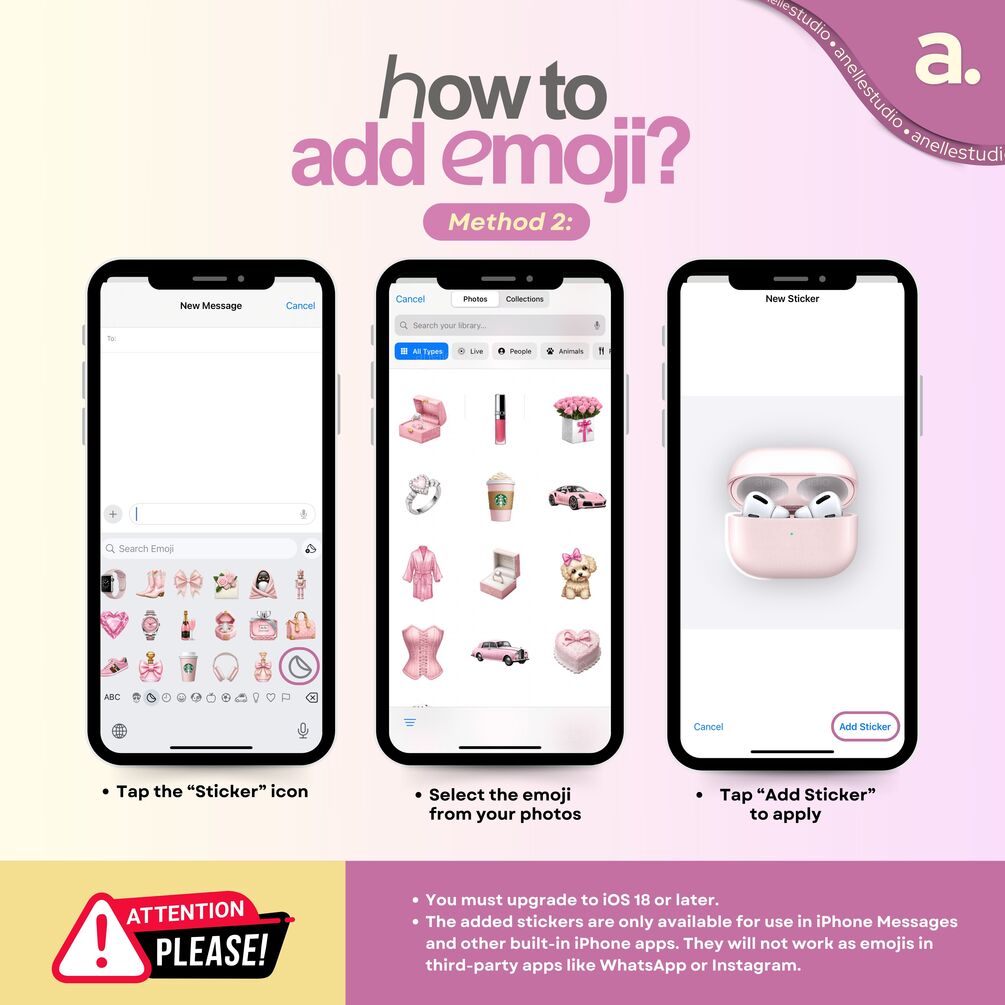 iOS 18 Pink Aesthetic Emoji Stickers Pack | High-Quality PNG Stickers for iPhone, iMessage & Social Media | Planner and Apple Stickers